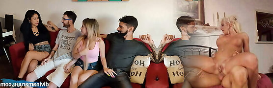 Warm and voracious swinger babes swap their partners to ride intense cocks