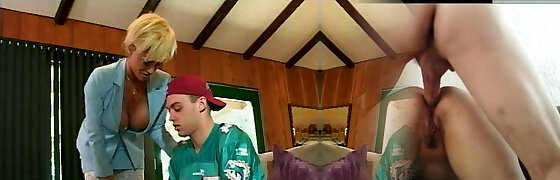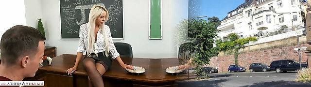 Mature and majestic blonde tutor fellates dick and fucks a student