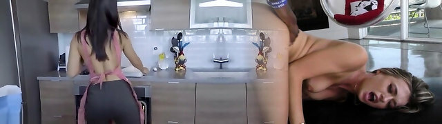 Ugly bearded grandpa fucks nubile sweetie in the kitchen
