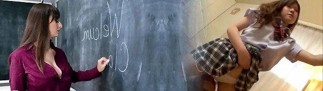 Sexy Japanese teacher allows college girl to touch her boobies and lick anal hole