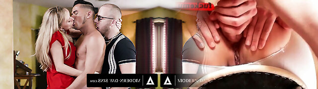 Alluring blonde hussy Grace Evangeline banged in MMF threesome