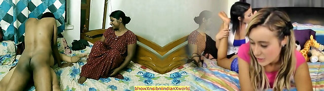 Steaming threesome sex with milf bhabhi and her village stepsister!!