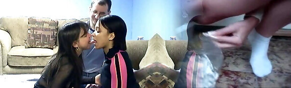 Big Knob Cum - Melissa and Mandy brunette teen fucking