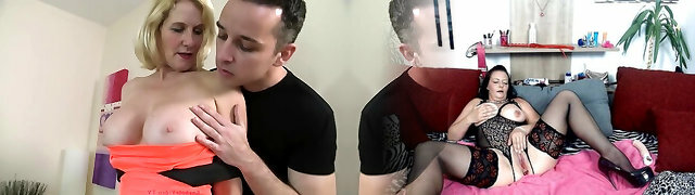 The step-mother helped to relieve tension and jerked off to him and for this she got a man sausage in assfucking