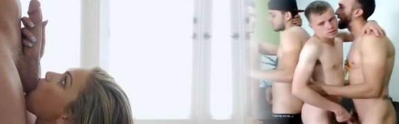 Highly Busty Blond Hair Babe Shagged By Two Hotness Guys