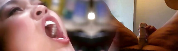 Asian beauty wraps her lips around a massive milky cock then gets pulverized