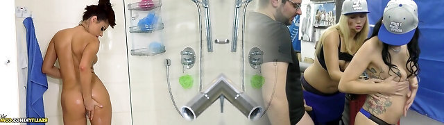 Im Taking A Shower And My Stepsisters Come In To Entice Me And We End Up Fucking