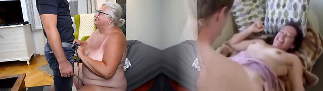 Old nanny and cute teenager dildoing themselves