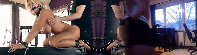 Huge tits blonde Brittany Andrews gets tied up and romped in doggy