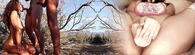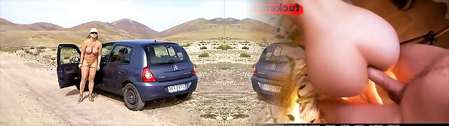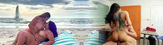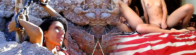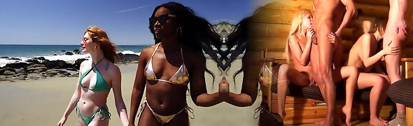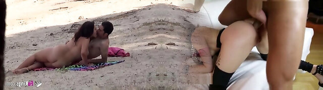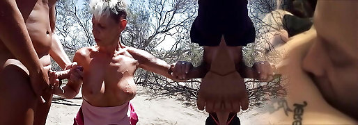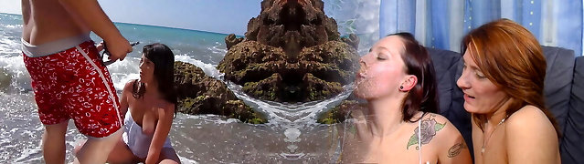 Assfucking threesome at the beach with a Spanish milf and a busty Arab female