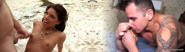 Romantic Start on the Public Beach heads with Rough Lovemaking ends up with a Thick Facial Money-shot on the Face and in the Mouth