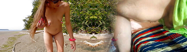 Slim Nudism Teen Seduce to Beach Donk Bang-out by Stranger Voyeur
