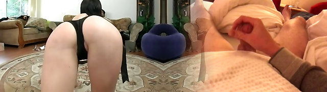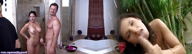 My step-mother cleans the douche, I want her to suck my dick. Part 2. My cum in her large butt