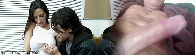Chocolate-colored eyed young female Jane Wilde is seduced by older man for wild sex