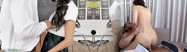 Lewd wondrous coed gal in uniform Mia kisses tutor and gets poked on the desk