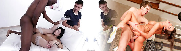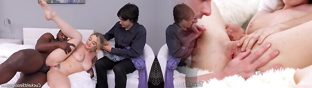 Barely barely legal beauty cuckolds boyfriend with hung stranger