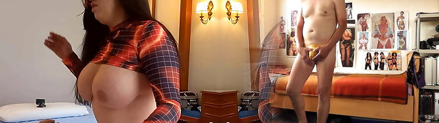 Mommy jumped in to my bed. Her beautiful tits make me firm so quick
