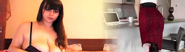 Extremely big-chested chubby brunette brags of her mesmerizing huge melons