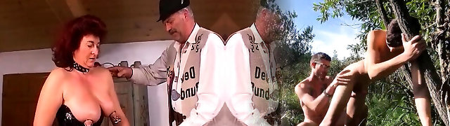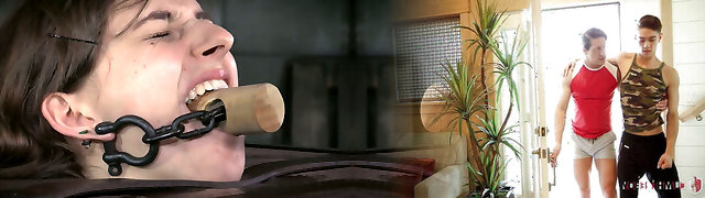 Busty cutie Whayes got wooden gag in her mouth got bounded by kinky sir