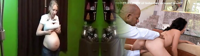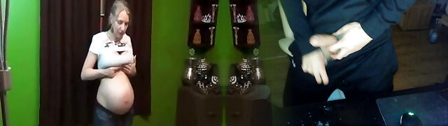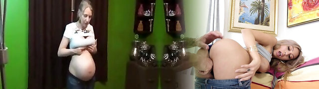 Perverted pregnant blonde measured her super saggy meaty boobies