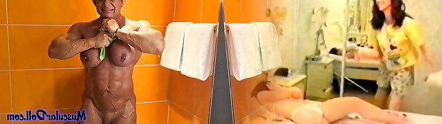 Extreme Muscled MILF Ripping her wet T-Shirt
