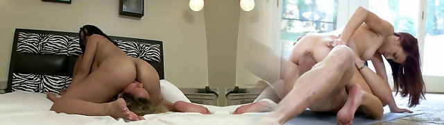 Hardcore bedroom lesbo threesome began in backseat