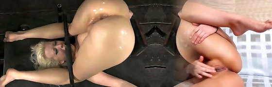 Flexible blond bitch gets her butt hole ruined in missionary style