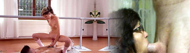 Bony dancer Arian is fucked face to face on the handrails in dance bedroom