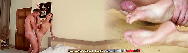 Hot and cute babe with small tits is rather flexible and likes fucking horny