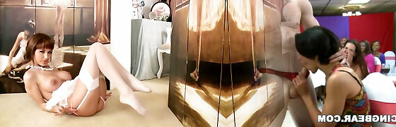 Beautiful brunette dancer in undergarments rubs her labia to big orgas