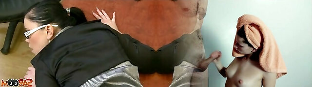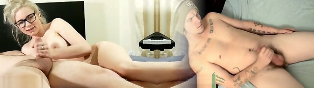 MILF with glasses rides her gigantic cocked stepson on the bed