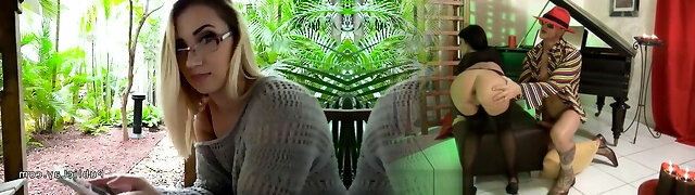 Obese blondie with big boobs and in glasses gets banged in mish pose stiff