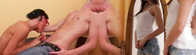 Nerdy Student Sucks Neighbors Cock in Public Facial and Glasses