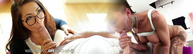 Bosomy alluring Cougar in glasses Eva Angelina cannot stop deep throating dick