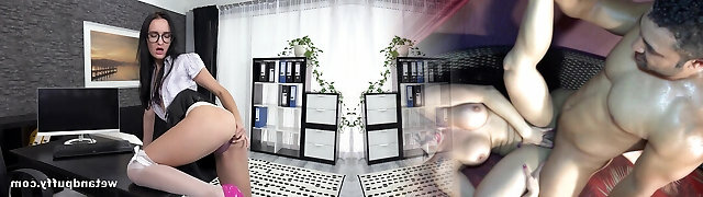 Deviant brunette in glasses and college uniform Sasha Sparrow wanna go solo