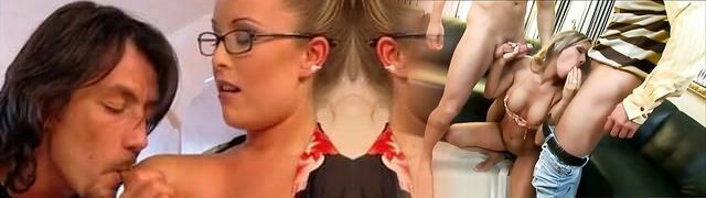 Brunette Jaye Summers bangs one nerd in glasses and luvs eating sperm