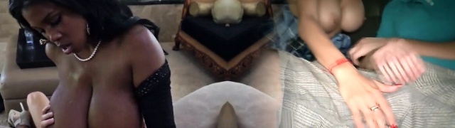 Busty honey Siri loves jerking a hard cock with her big boobs