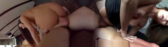 Superb damsels with big boobs get fucked and facialed in a three way