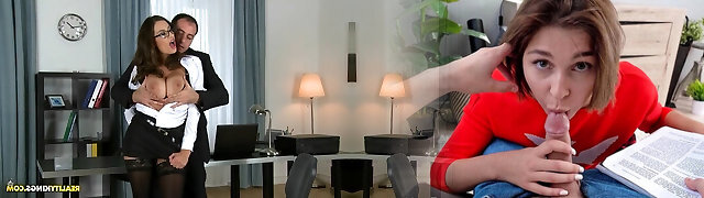 Hot office slut with big natural tits ravages an employee