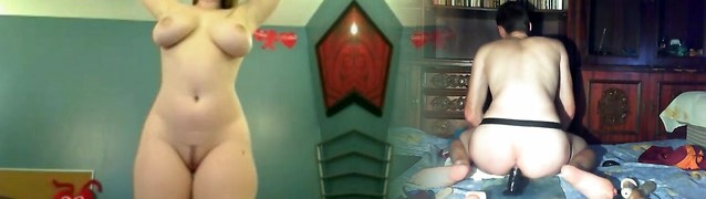 Homemade hard fuck with BBW wife and enormous dildo