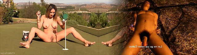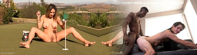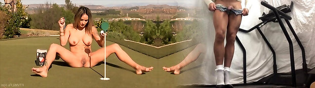 Bootylicious babe stretches her legs and has fun on the golf realm