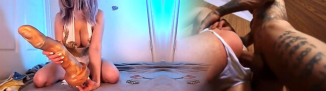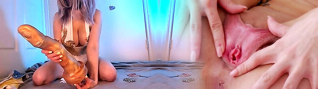 Slut Inserts Huge Cock-Shaped Dildos In Her Pussy.
