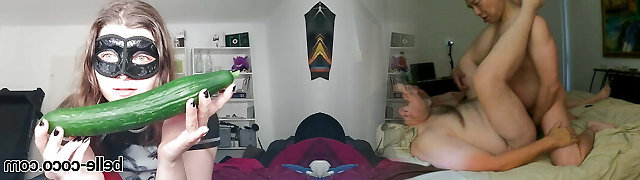 Ultra-kinky brunette teen with small boobies slides a thick cucumber in her pussy