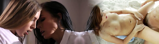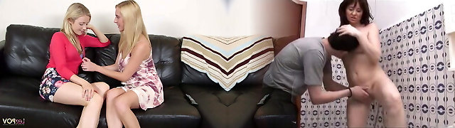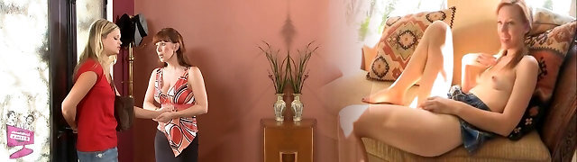 Lesbian pussy eat with blonde MILF and sweet teen doll