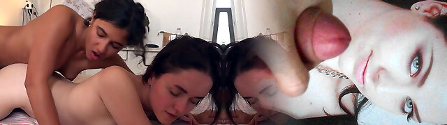 Pretty lesbian teen with fabulous natural bra-stuffers getting her pussy tongued