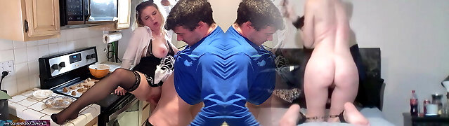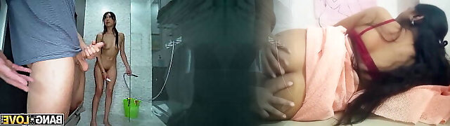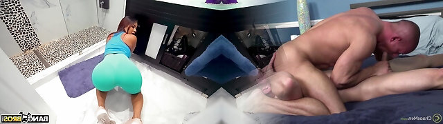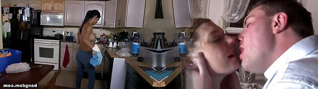 Horny guy watches his bare maid and they tempt each other - Rose Monroe