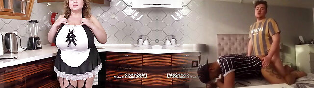 A Big French Maid With A Large Inborn Boobs Gives Pov Blowjob