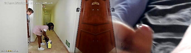 A Maid From Ukraine In A Hotel Guest Room Is Alarmed When She Sees A Client With His Big Enormous Manstick In Action...she Want Touch Him And Jerk Off 6 Min