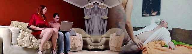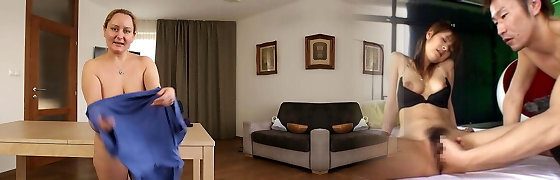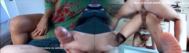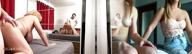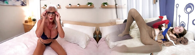 Sharing the couch with Stepmom again, she agrees because she is too horny!