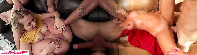Pinky promise no one will know that these two big tits blondes girl-girl fucked on the sofa